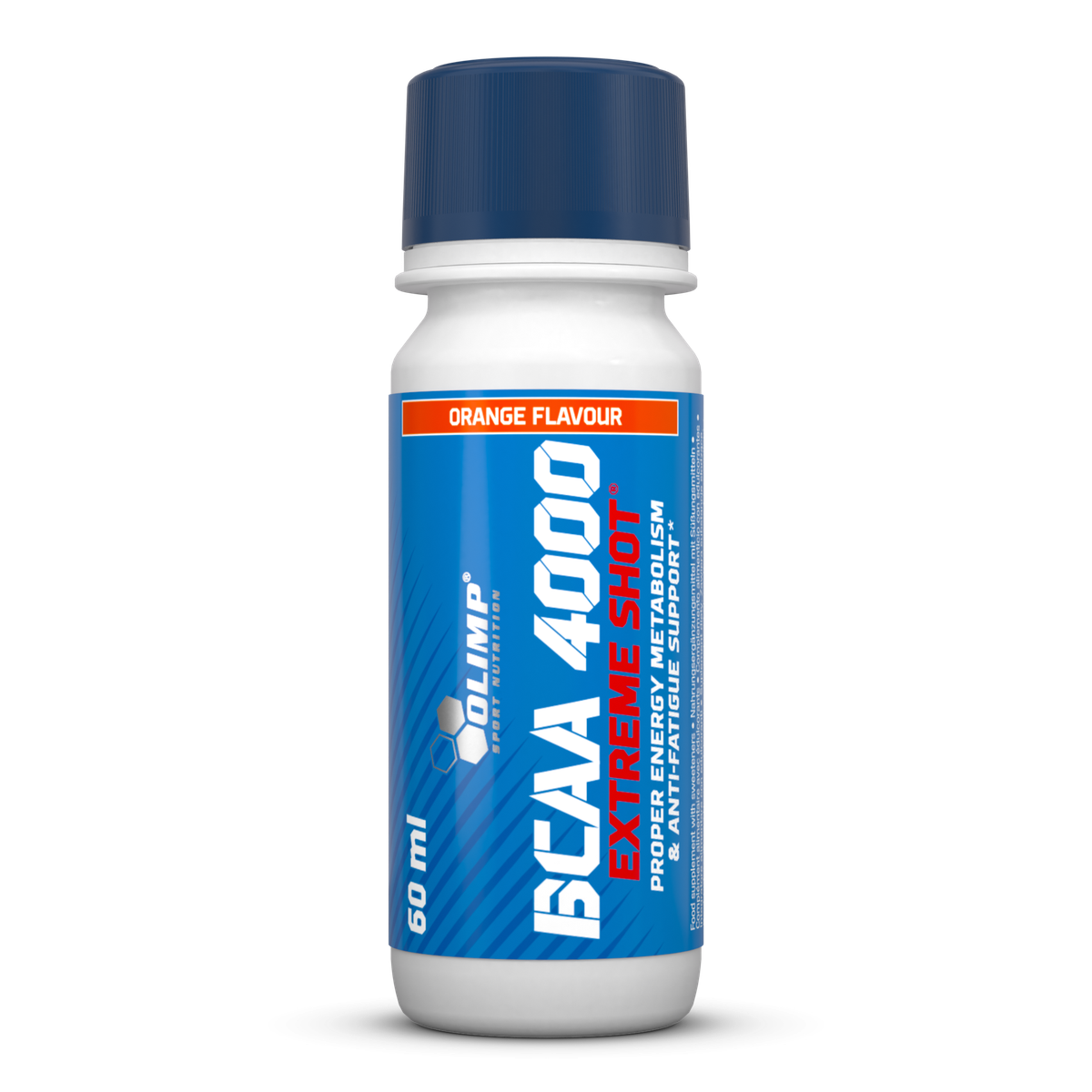 Olimp BCAA 4000 Extreme Shot – suplement diety. Zawiera substancje słodzące. Suplement diety w płynie w ampułce 60 ml, zawierający kompleks aminokwasów rozgałęzionych (L-leucynę, L-walinę, L-izoleucynę), a także L-argininę oraz witaminy B6 i B12.