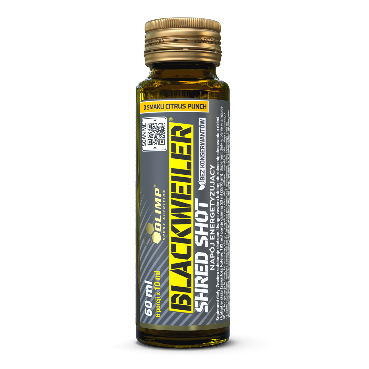 Olimp BLACKWEILER® SHRED Shot - suplement diety. Zawiera substancje słodzące. Smak citrus punch.