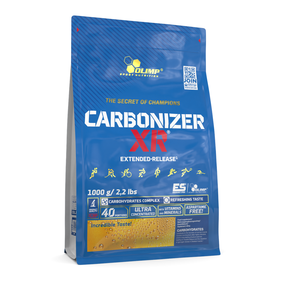 Carbonizer XR® Sport Edition – suplement diety w formie proszku na bazie węglowodanów z witaminami i minerałami. Zawiera cukry i substancje słodzące. 1Produkt oparty jest na 4 źródłach węglowodanów, w tym izomaltulozie** i woskowej skrobi kukurydzianej, które charakteryzują się przedłużonym uwalnianiem monosacharydów. Węglowodany przyczyniają się do przywrócenia prawidłowego funkcjonowania mięśni (skurczu) po bardzo wytężonym lub długotrwałym wysiłku fizycznym prowadzącym do zmęczenia mięśni i wyczerpania zapasów glikogenu w mięśniach szkieletowych (2korzystne działanie występuje w przypadku spożywania węglowodanów, ze wszystkich źródeł, przy łącznym spożyciu wynoszącym 4 g na Kg masy ciała, w dawkach przyjmowanych w ciągu pierwszych 4 godzin po bardzo wytężonym lub długotrwałym wysiłku fizycznym prowadzącym do zmęczenia mięśni i wyczerpania zapasów glikogenu w mięśniach szkieletowych i nie później niż 6 godzin po takim wysiłku). Formuła została uzupełniona kompleksem witamin oraz istotnych dla wysiłku fizycznego minerałów, takich jak magnez, który przyczynia się do redukcji uczucia zmęczenia i znużenia. Potas i wapń przyczyniają się do normalnego funkcjonowania mięśni, a dodatkowo wapń wspiera normalny metabolizm energetyczny i prawidłowe przekaźnictwo nerwowe.