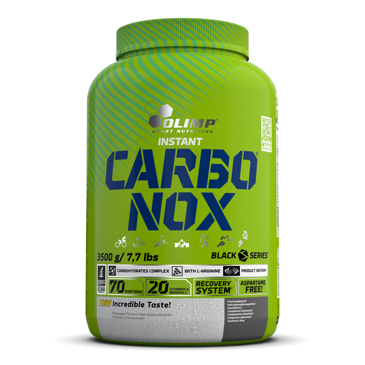 CARBONOX® – suplement diety w proszku. Zawiera cukry i substancje słodzące. Kompozycja składników energetycznych – węglowodanów o zróżnicowanych wielkościach cząstek: maltodekstryn, szybko działającej glukozy oraz innowacyjnej izomaltulozy** o przedłużonym uwalnianiu. Produkt uzupełniono o witaminy, minerały oraz L-argininę – składnik pokarmowy, z którego powstają w organizmie związki aktywne biologicznie, takie jak np. tlenek azotu (NO). 2Węglowodany przyczyniają się do przywrócenia prawidłowego funkcjonowania mięśni (skurczu) po bardzo wytężonym lub długotrwałym wysiłku fizycznym prowadzącym do zmęczenia mięśni i wyczerpania zapasów glikogenu w mięśniach szkieletowych (korzystne działanie występuje w przypadku spożywania węglowodanów, ze wszystkich źródeł, przy łącznym spożyciu wynoszącym 4 g na kg masy ciała, w dawkach przyjmowanych w ciągu pierwszych 4 godzin po bardzo wytężonym lub długotrwałym wysiłku fizycznym prowadzącym do zmęczenia mięśni i wyczerpania zapasów glikogenu w mięśniach szkieletowych i nie później niż 6 godzin po takim wysiłku).