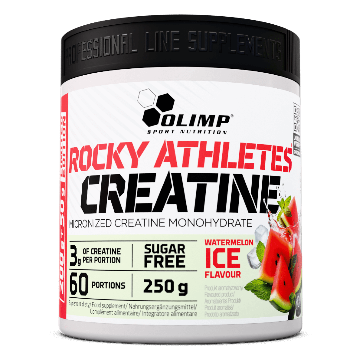 Olimp Rocky Athletes® Creatine – suplement diety w proszku, zawierający mikronizowany monohydrat kreatyny z magnezem i witaminą B6. Zawiera substancje słodzące. O smaku bubble ice.