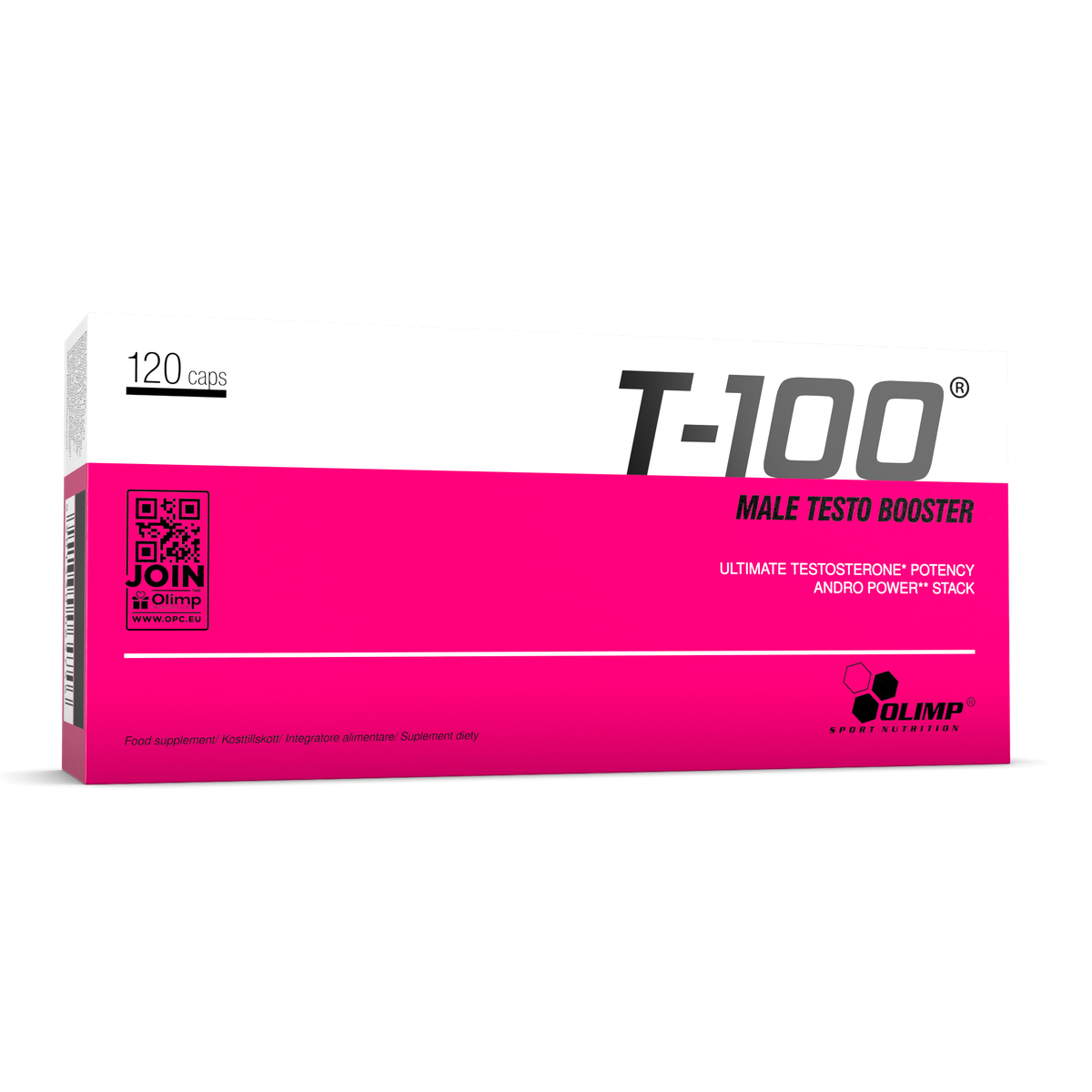T-100® Suplement diety w kapsułkach. Kompozycja składników aktywnych zawierająca w swoim składzie m.in.: *cynk, który pomaga w utrzymaniu prawidłowego poziomu testosteronu we krwi, witaminę B6 przyczyniającą się do regulacji aktywności hormonalnej. Ekstrakt rożeńca górskiego (Rhoalola rosea) przyczynia się do prawidłowego przepływu krwi, pomaga w utrzymaniu optymalnej aktywności umysłowej i poznawczej. Ekstrakt ashwagandhy KSM-66” przyczynia się do wzrostu masy mięśniowej oraz **dodaje energii.